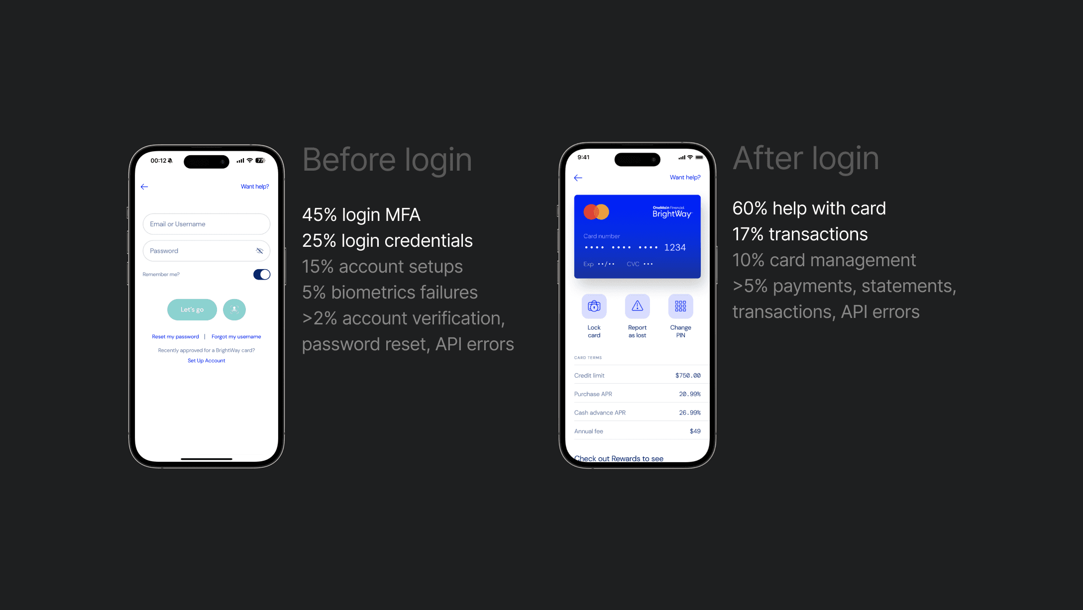 I kicked off with a detailed UX audit, secondary research, and categorization of user feedback from app store reviews and social media complaints. Data analysis, in collaboration with our engineering team, identified login issues as the primary call driver.