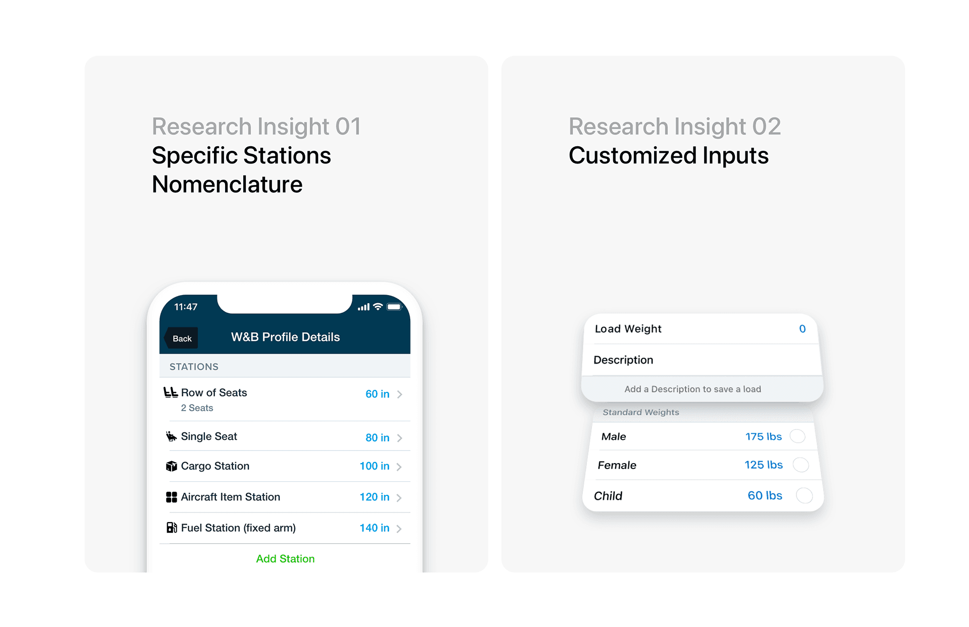 Through secondary research and literature review, I delved into uncovering the varied nomenclature associated with different user personas, including GA, BA pilots, and USAF pilots. Pilots often used the terms "loads" and "stations" interchangeably, influenced by their diverse experiences and educational backgrounds.